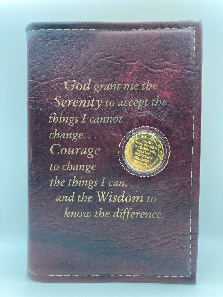 2nd Edition, 4th Printing, 1960. Hardcover book in acceptable condition. Pages are clean with no writing or highlights. Biinding is wobbly. Front loose endpaper is split from textblock (see photo). Cover is very faded at spine and scraped along edges. No dust jacket, but it has a leatherette cover with the Serenity Prayer. View full details