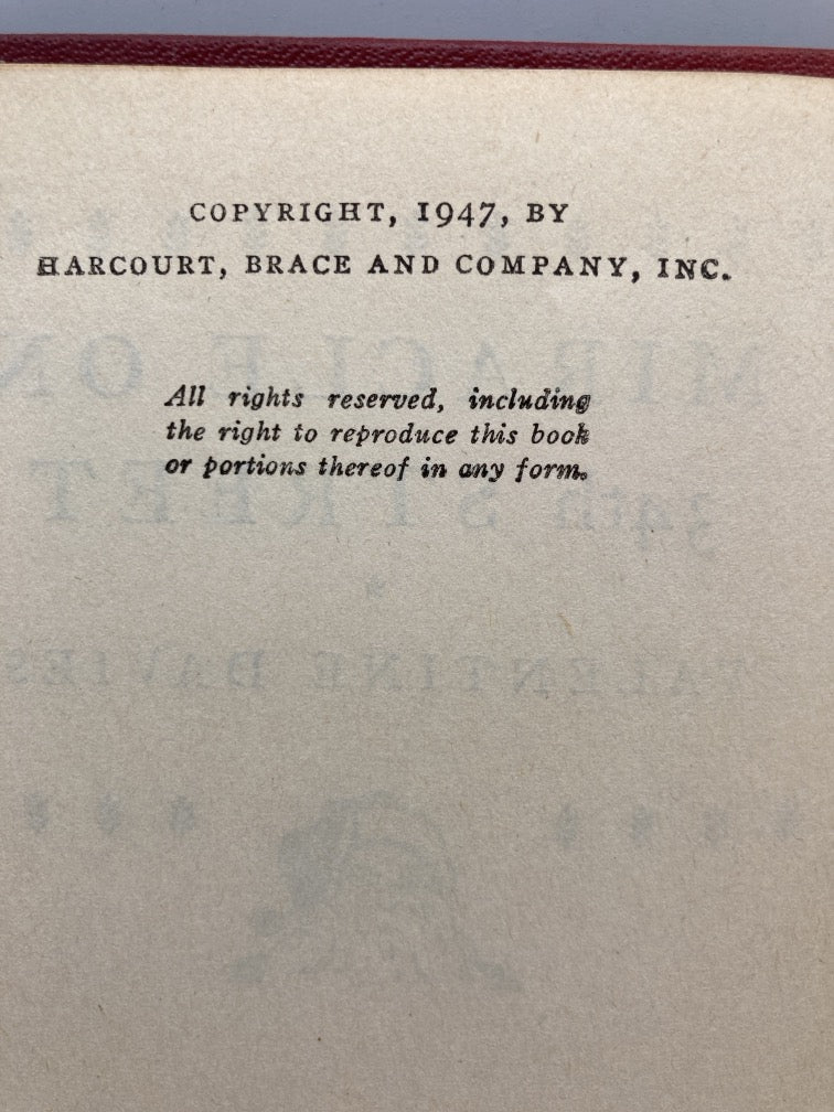 First edition 1947. Hardcover book in good condition. Binding is square and tight. Pages are clean with no writing or highlights. Cover has wear and has fading at spine. Front cover has 3 white spots on top left corner. No dust jacket. View full details