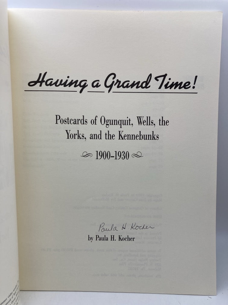 This listing is for a set of books on the topic of Wells, Maine. Both books are signed. 1) Wells: Inscribed and signed. Hardcover book and dust jacket in good condition. Binding is square and tight. Pages are clean with no writing or highlights. Cloth on cover is worn along edges and some areas of front cover. Dust jacket has wear and small tears. Front of dust jacket has some wavy areas. 2) Having a Grand Time! Postcards of Ogunquit, Wells, the Yorks and the Kennebunks 1900-1930: Paperback book in like new condition View full details